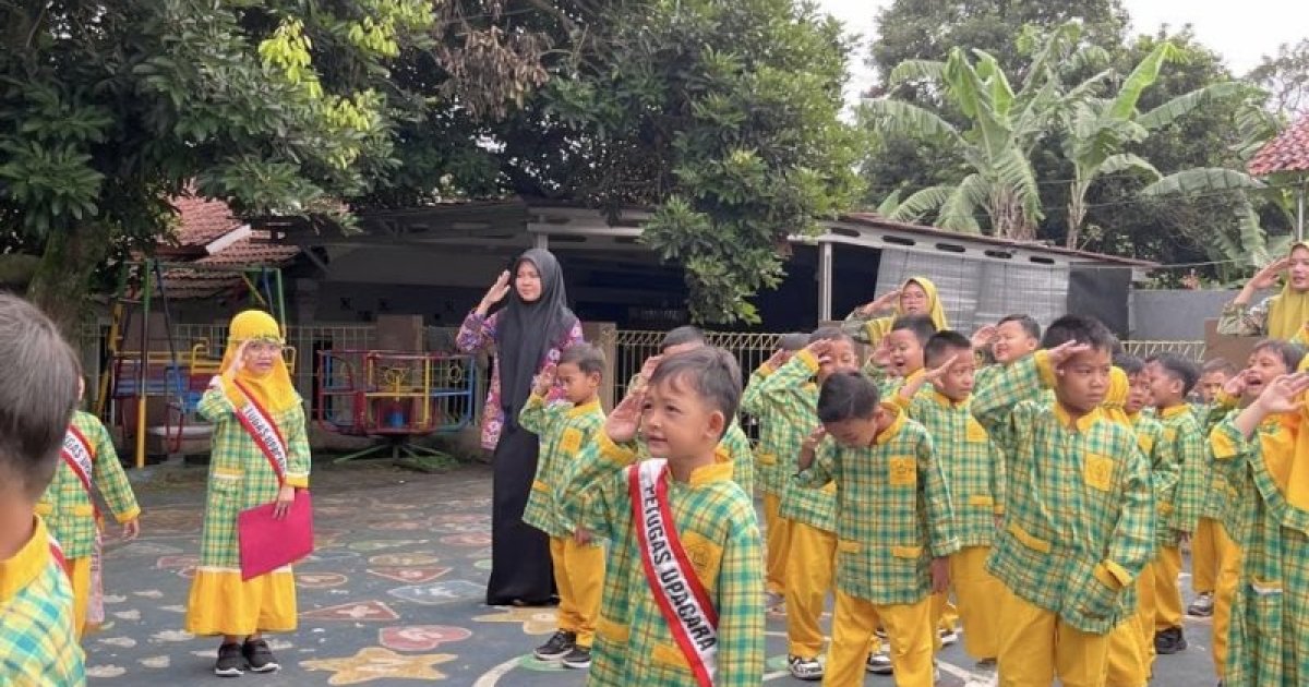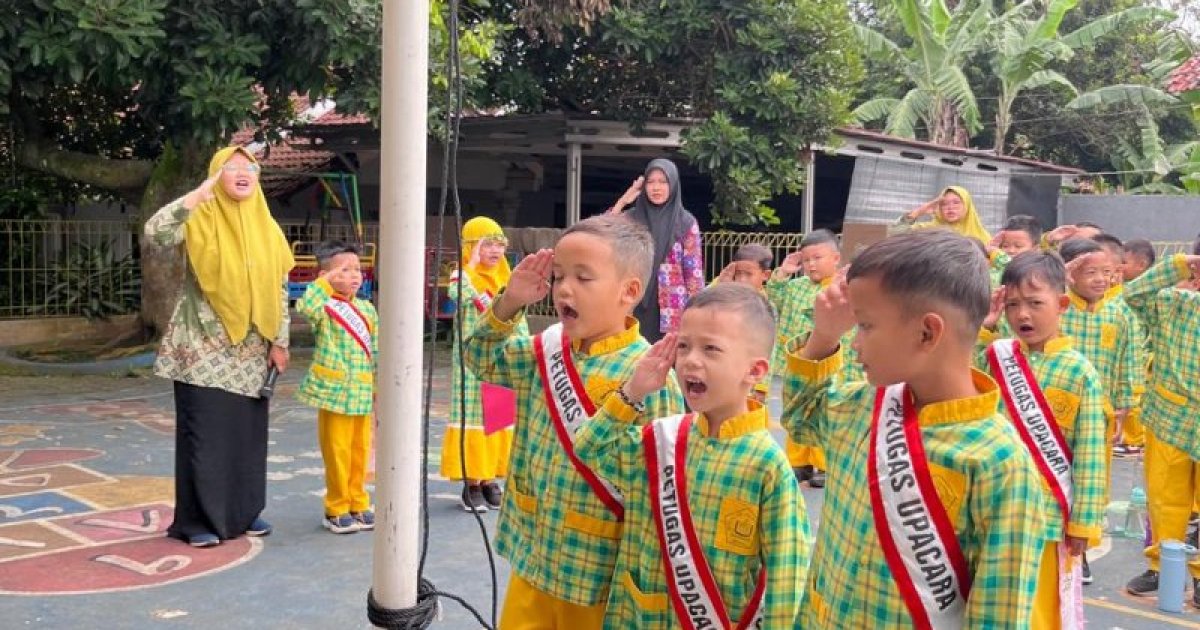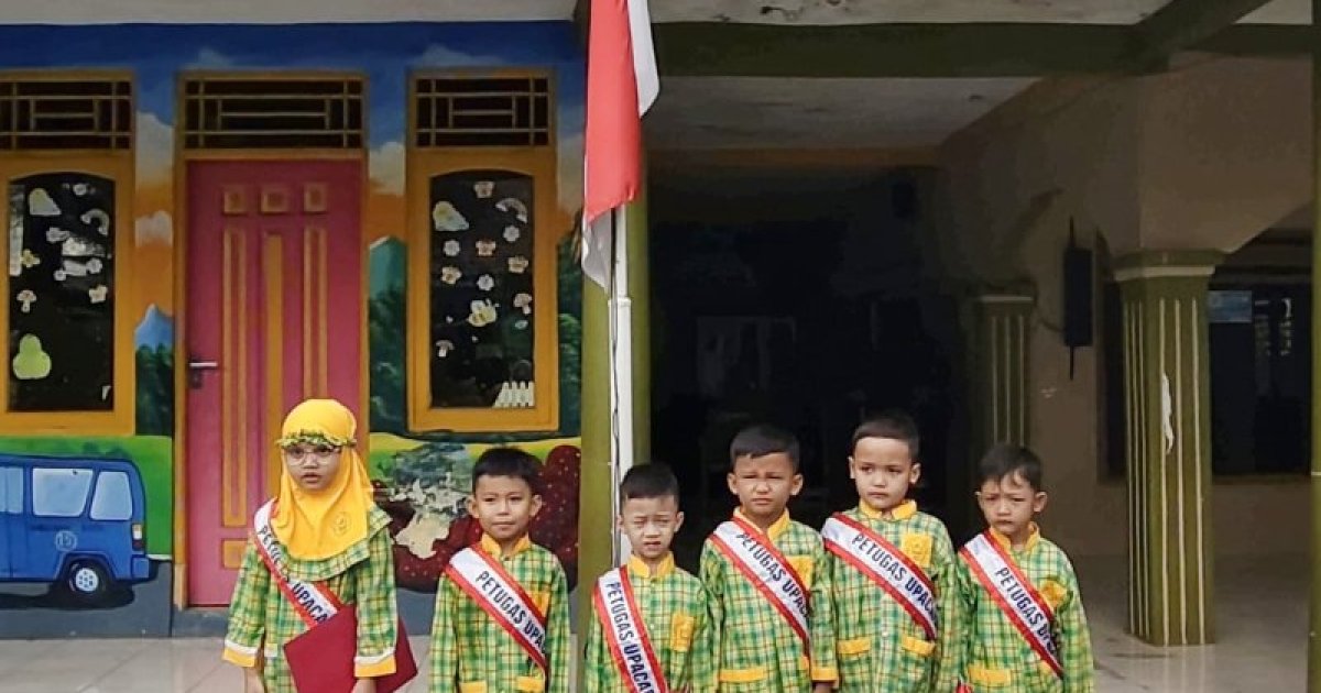 Setiap Senin pagi, halaman sekolah berubah menjadi ruang belajar terbuka, tempat anak-anak usia dini belajar berdiri tegak, memberi hormat, dan mengenal arti cinta tanah air melalui upacara bendera rutin.